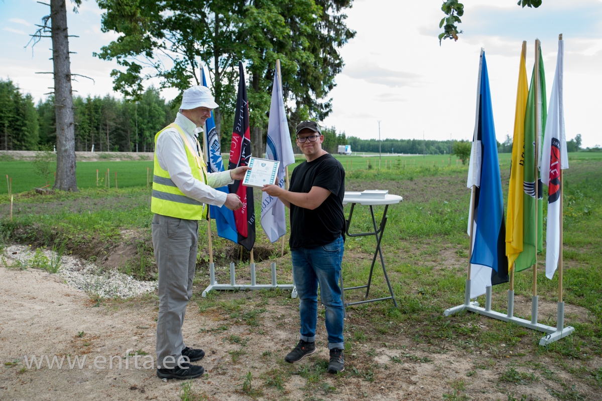 Vaatamata teise päeva tasavägistele ja headele tulemustele, ei õnnestunud seekord laskureid ümberlaskmisele meelitada. Põnevust pakkus raja esimene märk, mis oli seekord paigutatud vana talumaja teise korruse tugitala külge, nii et väljaspoolt vaadatuna oli 1 x 1 m aken kogu tabamisala, kust tuli üles leida võistlusmärk. Tuult jagus teiseks päevaks ning kuumusest tekkinud miraaž põllul pakkus omajagu väljakutset märkide tabamiseks. Tundub, et laskurid jäid rahule ja see teeb korraldajale rõõmu, kuid alati hoiame silmad lahti, et otsida uusi väljakutseid. Anname teatepulga edasi järgmisele korraldajale 🙂