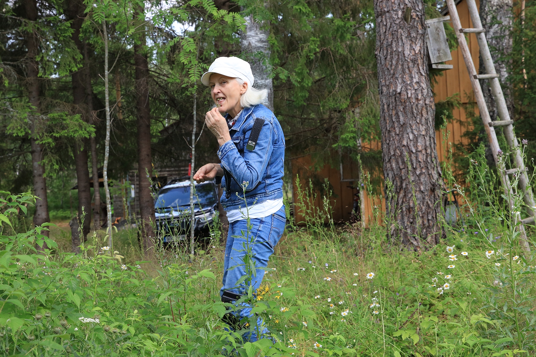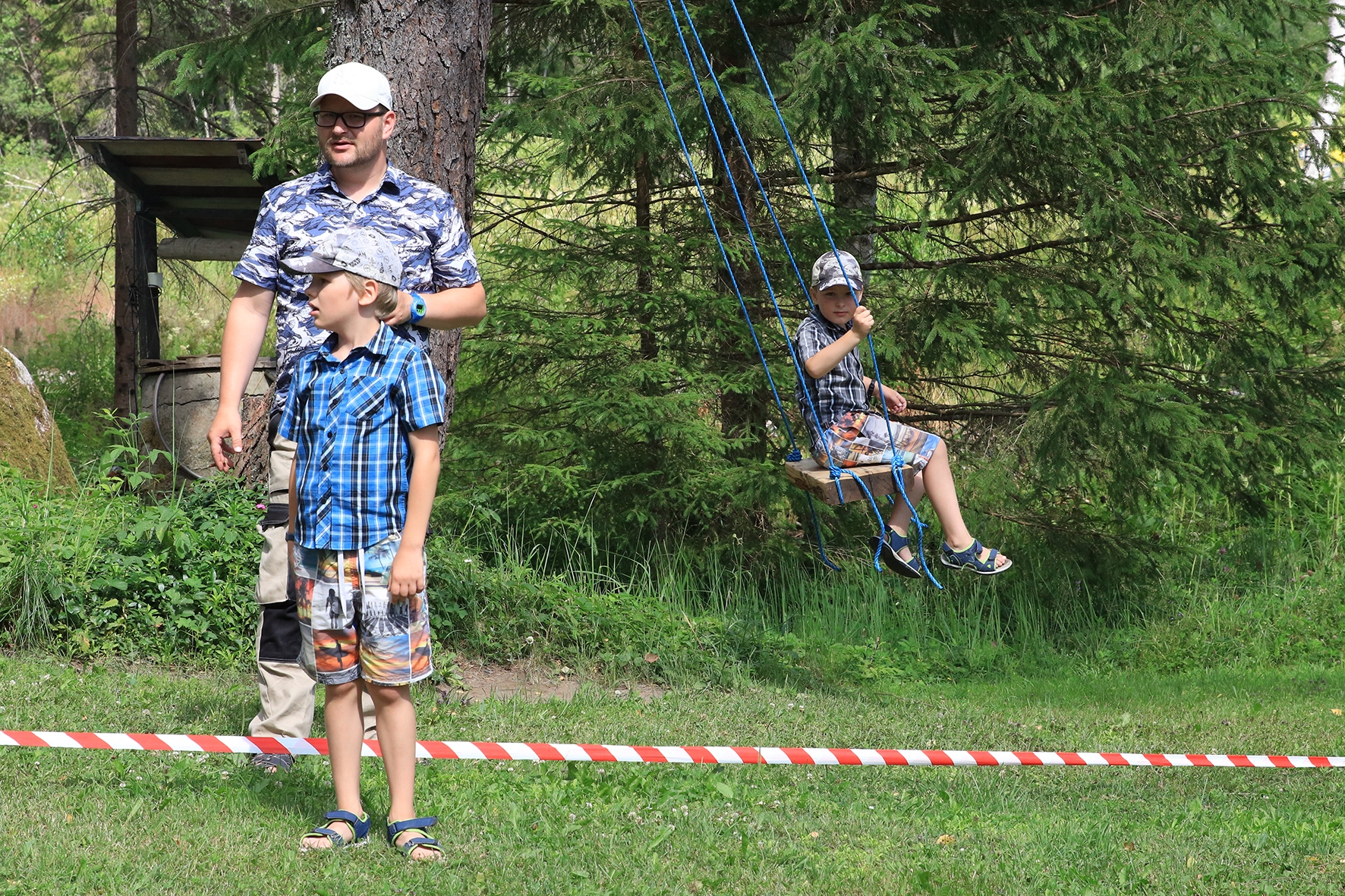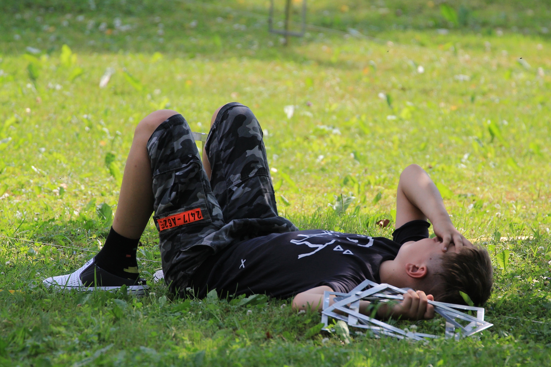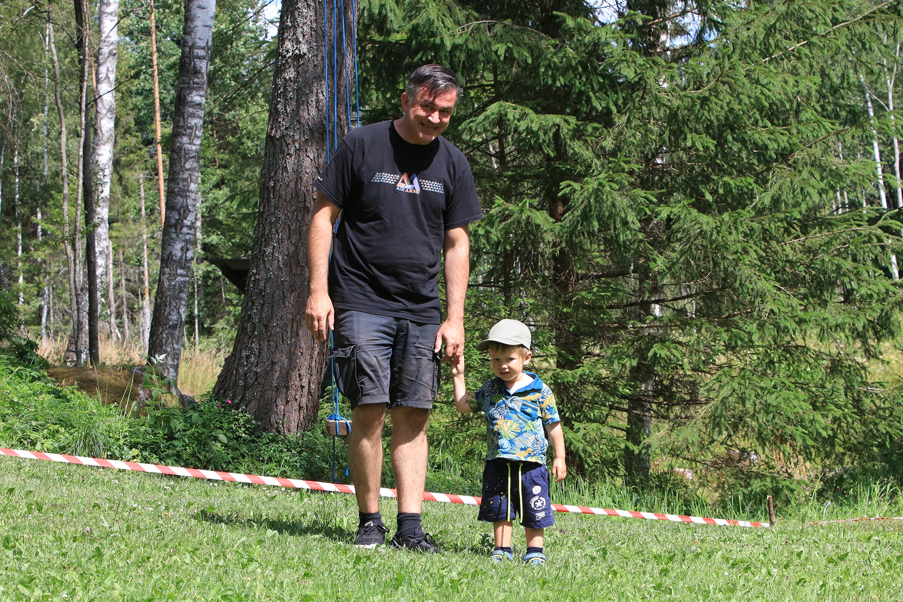 Vahepeal kuivanud riided olid uuesti märjad. Mereväelane Taavi ja Karl Erik rajasid sekstandi ning teiste täppisriistade abiga Zero Range väljakut. Ka seal oli palav. Tunnid möödusid ja rajad valmisid. Samal ajal, kui meie panime märke üles, korjas Jane magustoitude jaoks metsmaasikaid. Suvetaevasse hakkas kogunema igavaid pilvi 🙂 Viimastele radadele märkide panemisel hakkas sadama. Mitte natukene, vaid terve päeva vihmakogus tuli alla umbes paarikümne minutiga. Mitte ühtegi kuiva kohta enam polnud, kuid veel kolm rada ootasid lõpetamist. Neist kõige keerulisemale oli vaja tõmmata redel nii pikaks kui sai ja siis mööda seda koos märgiga krabinal kuuse otsa jõuda. Oli hirmus ja ohtlik, kuid see märk sinna sai 🙂