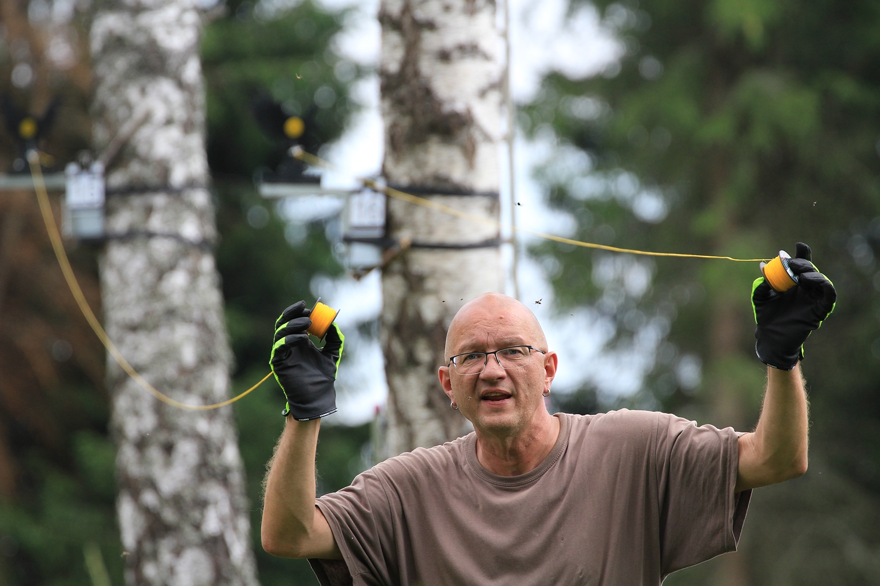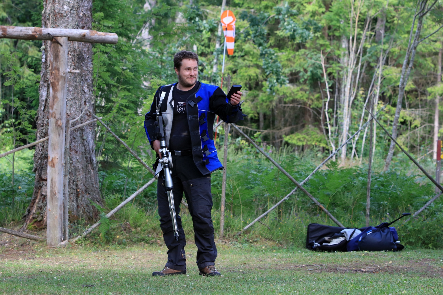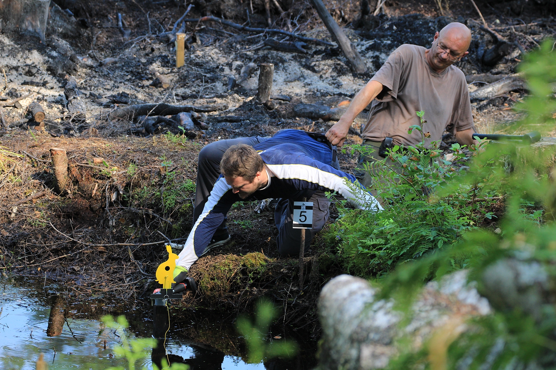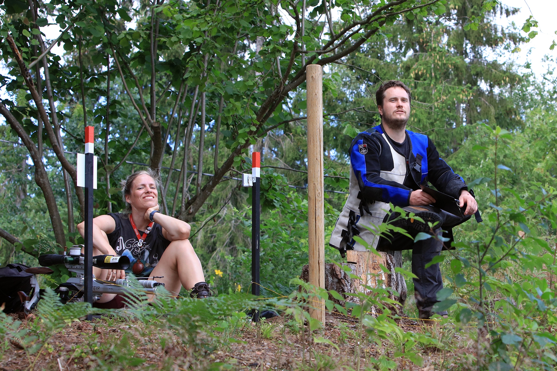 Loomulikult hakkas terve juuni kuiv ja päikeseline ilm enne võistlust iseloomu näitama. Siiski oli lootust kaks võistluspäeva kuiva nahaga teha. Reedeks lubas prognoos pisut vihma, kuid ei midagi erilist 🙂 Selge see, et sellist juttu ei maksa liiga tõsiselt võtta. Hommikuses kastemärjas metsas puudele märgikinnitusi pannes said riided esimest korda märjaks. Päev veeres ja temperatuur muudkui tõusis. Hilisema ärkamisega suuremad parmud jõudsid ka lõpuks kohale 🙂 Metsavilus oli veel siiski normaalne, kuid ees ootas meid soine padrik, kuhu oli vaja enamus sihtmärke paigaldada. Aastaga on raiesmik kattunud võsaga, see tähendas seda, et lisaks märkidele tuli ka ca neljameetrist redelit kaasa vedada. Soine pinnas auras, õhk ei liikunud ja oli parmudest paks.