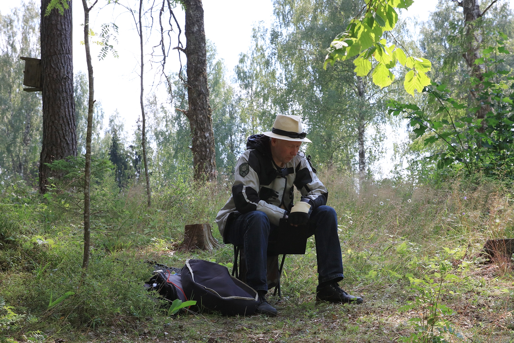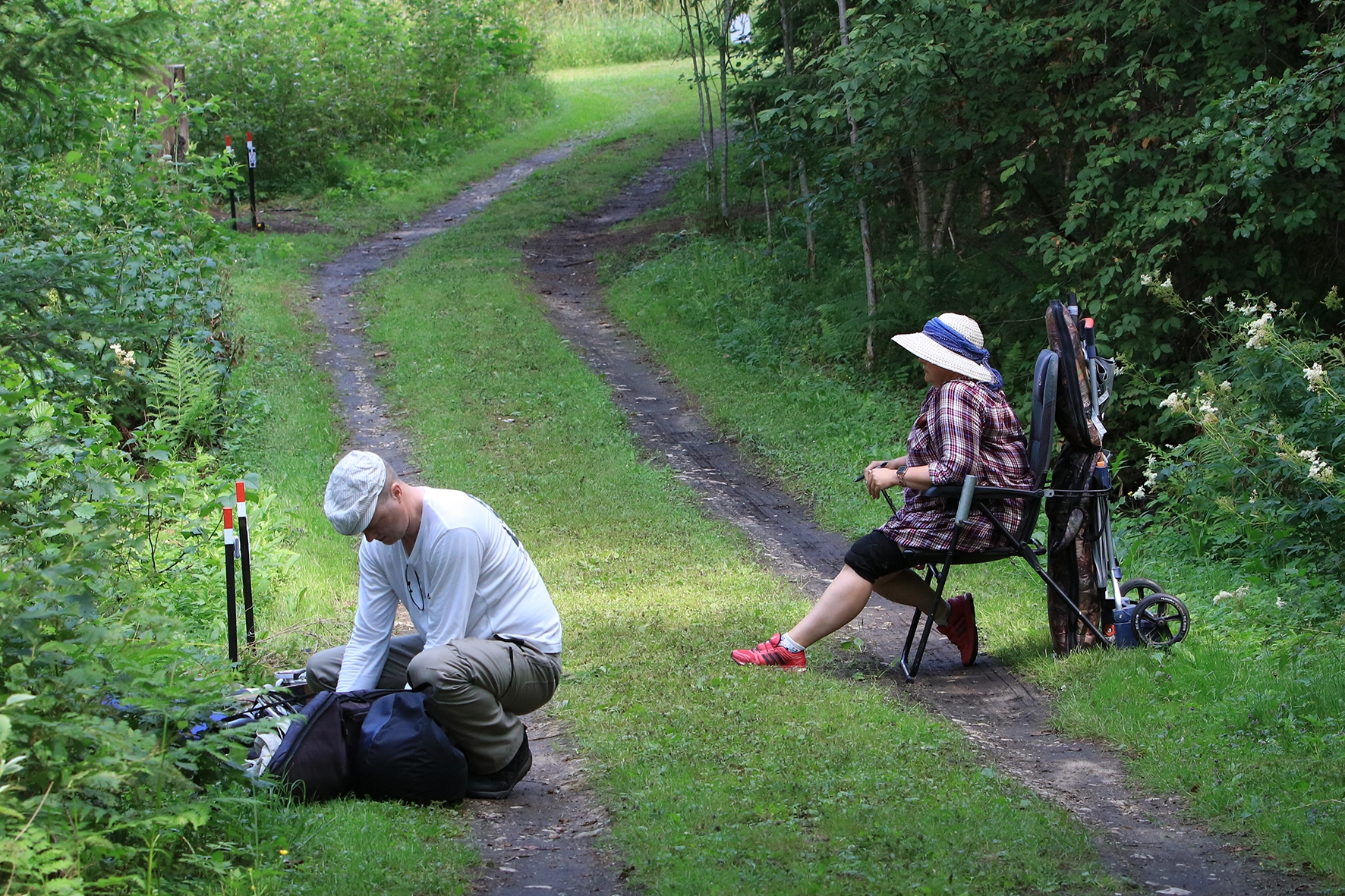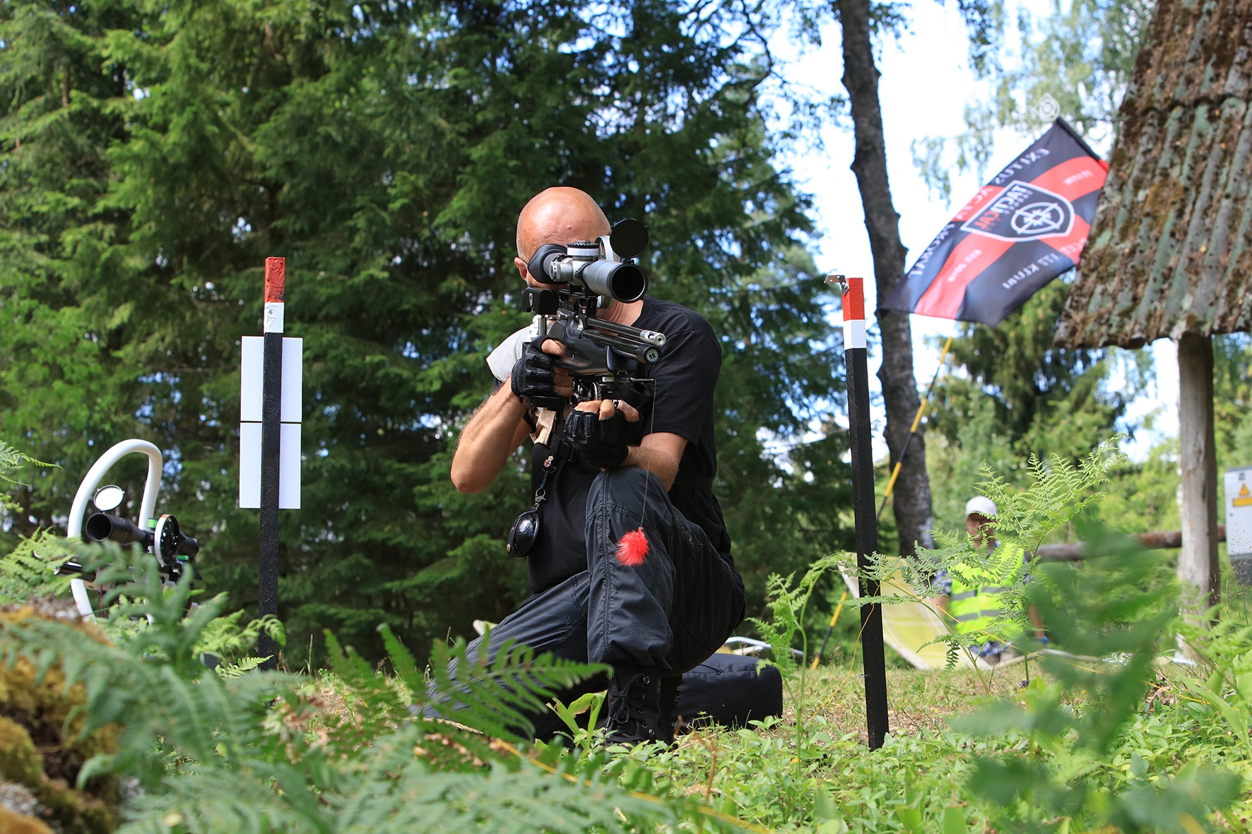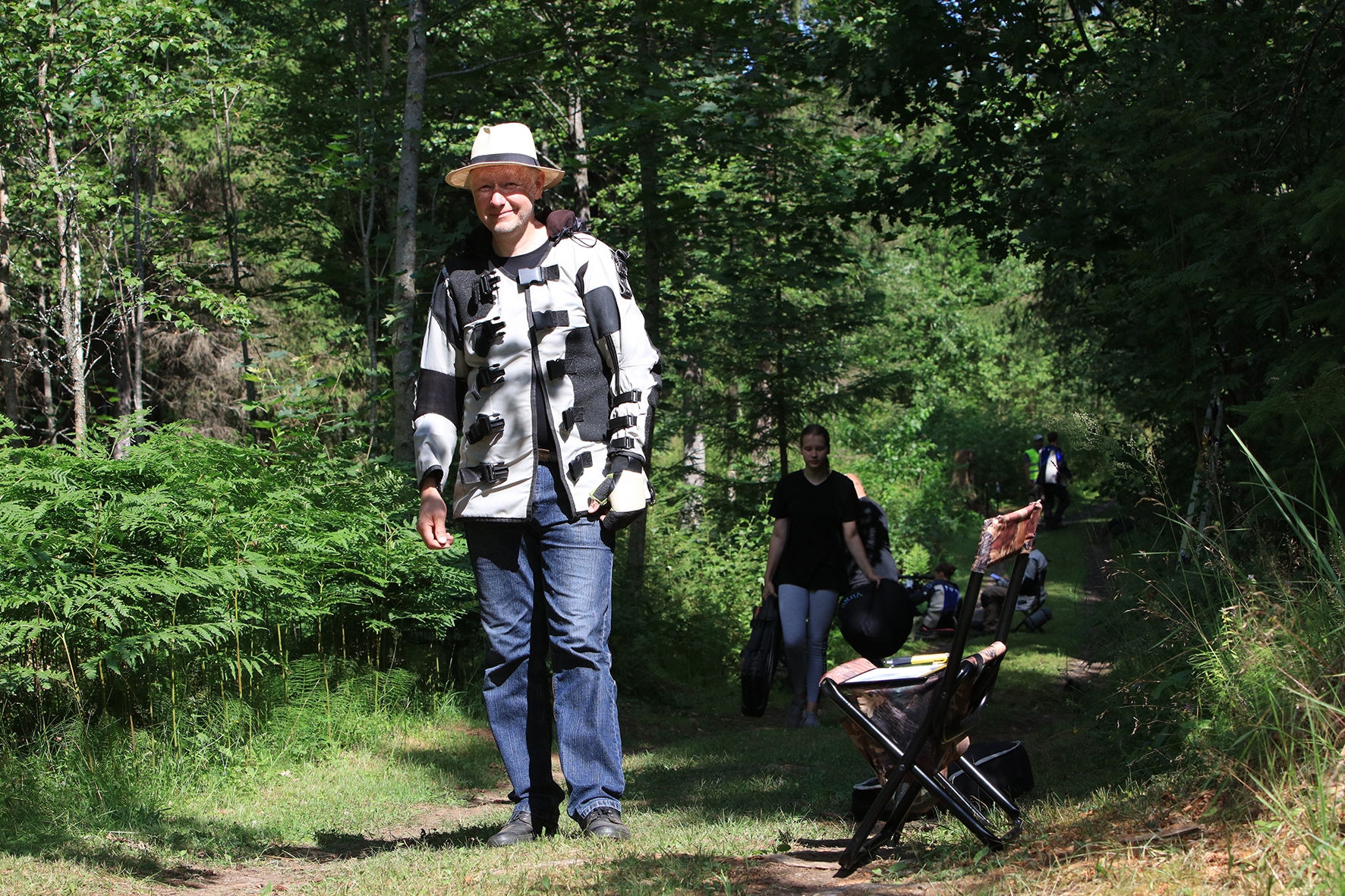 Loomulikult hakkas terve juuni kuiv ja päikeseline ilm enne võistlust iseloomu näitama. Siiski oli lootust kaks võistluspäeva kuiva nahaga teha. Reedeks lubas prognoos pisut vihma, kuid ei midagi erilist 🙂 Selge see, et sellist juttu ei maksa liiga tõsiselt võtta. Hommikuses kastemärjas metsas puudele märgikinnitusi pannes said riided esimest korda märjaks. Päev veeres ja temperatuur muudkui tõusis. Hilisema ärkamisega suuremad parmud jõudsid ka lõpuks kohale 🙂 Metsavilus oli veel siiski normaalne, kuid ees ootas meid soine padrik, kuhu oli vaja enamus sihtmärke paigaldada. Aastaga on raiesmik kattunud võsaga, see tähendas seda, et lisaks märkidele tuli ka ca neljameetrist redelit kaasa vedada. Soine pinnas auras, õhk ei liikunud ja oli parmudest paks.