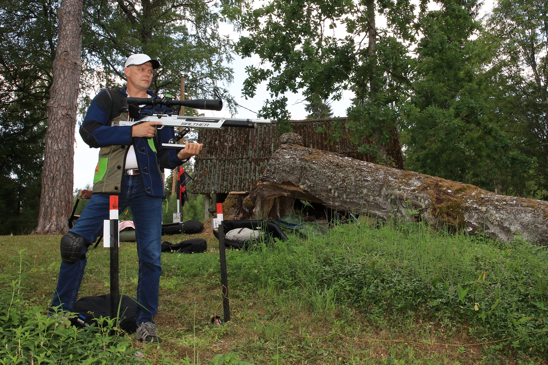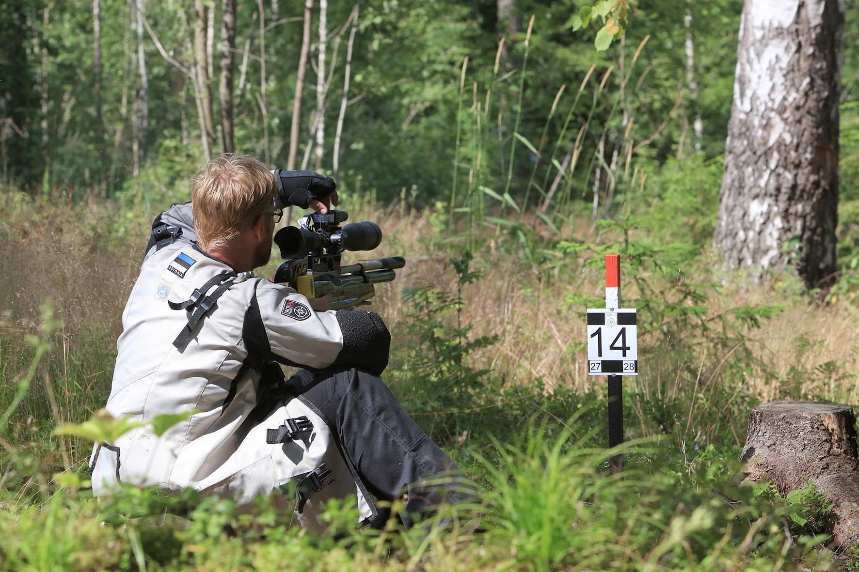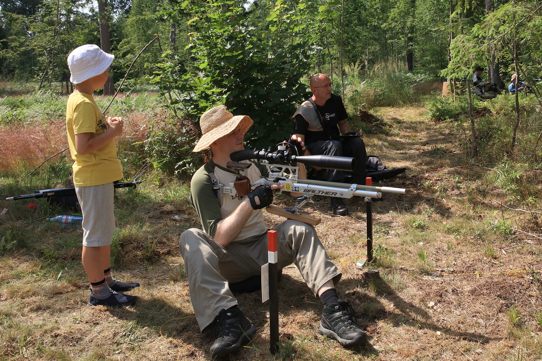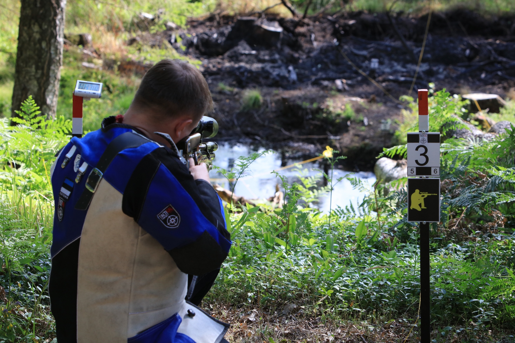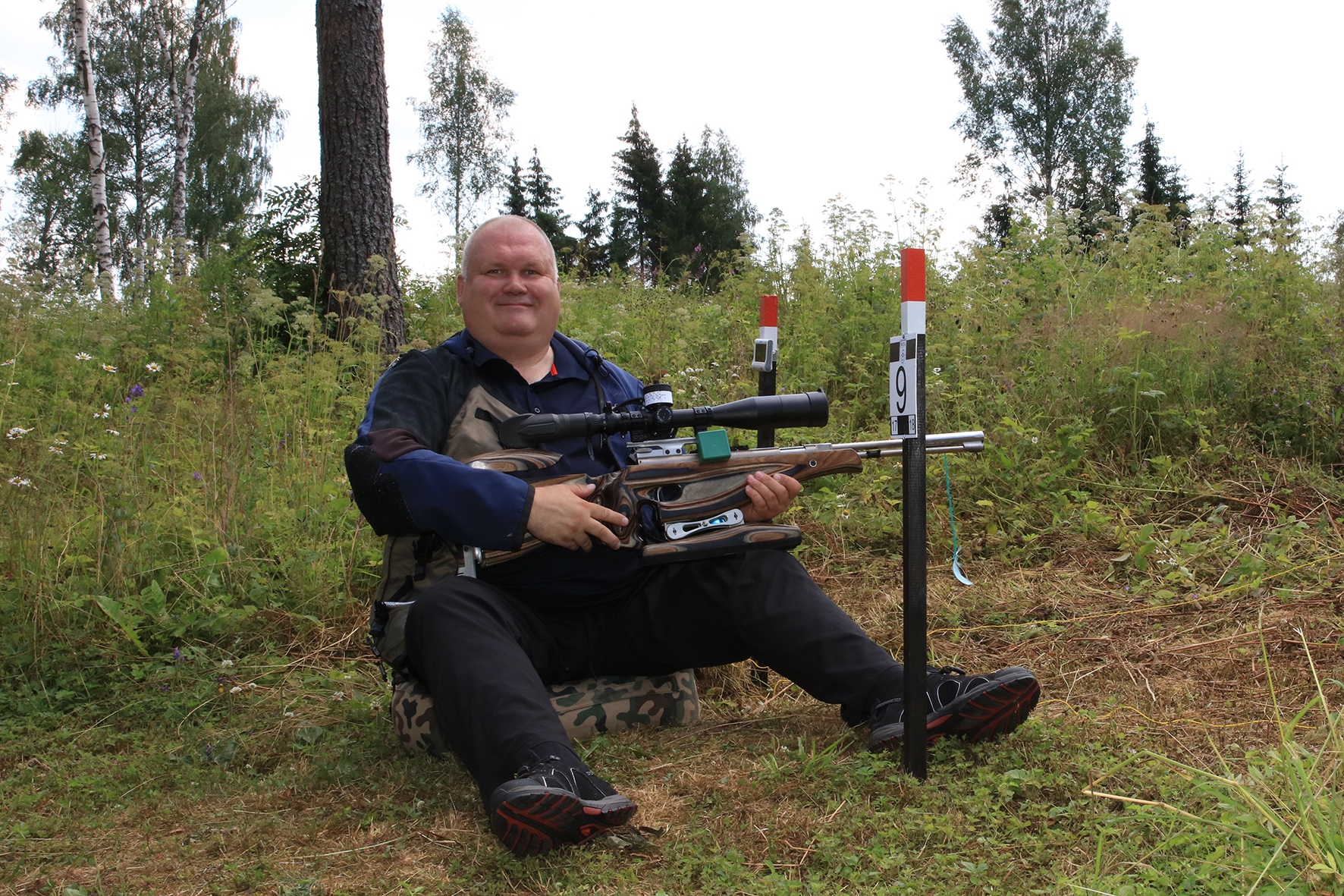 Võistlus algas. Laskurid lasid sihtmärke ning võitlesid palavuse ja putukatega. Päike paistis, temperatuur tõusis, optikad tegid trikke, kuid võistlus sujus. Keset sellist idülli kõlas kohtuniku vile – „Tuli seis!”. Selgus, et üks kukk oli kinni kiilunud 🙂 Kohtunik Toomas eemaldas oksa ning võistlus jätkus. Saabus esimese võistluspäeva lõpp. Laskureid ootas ees seljanka ning üllatusmagustoit metsmaasikatega.