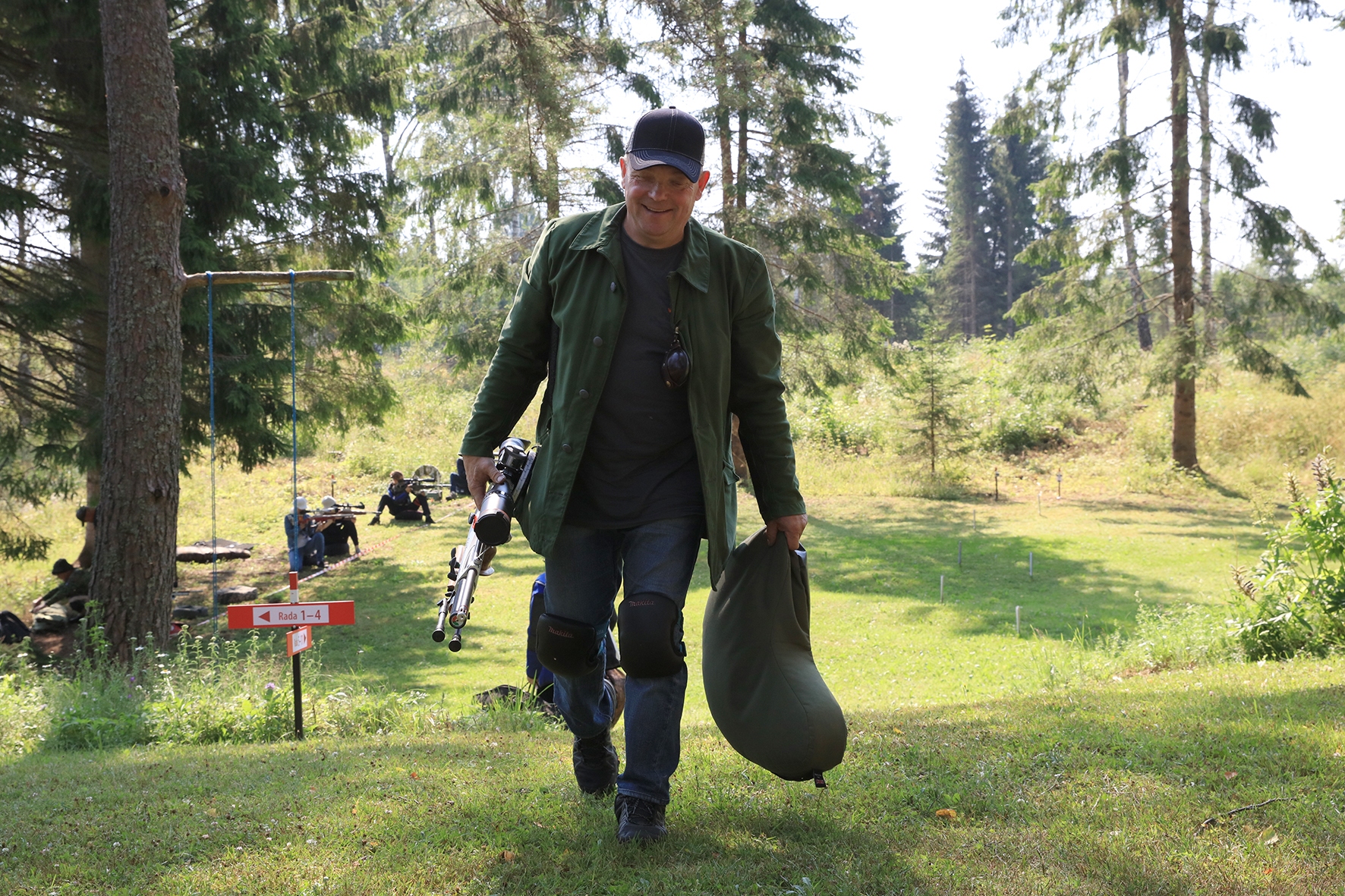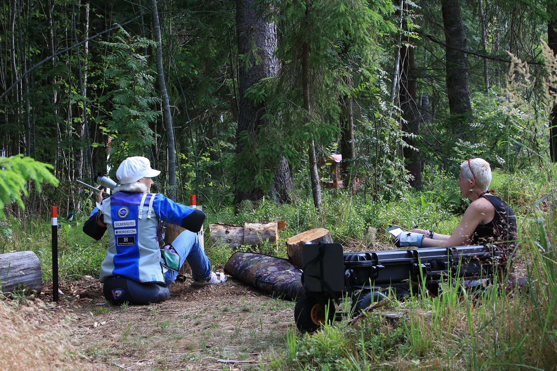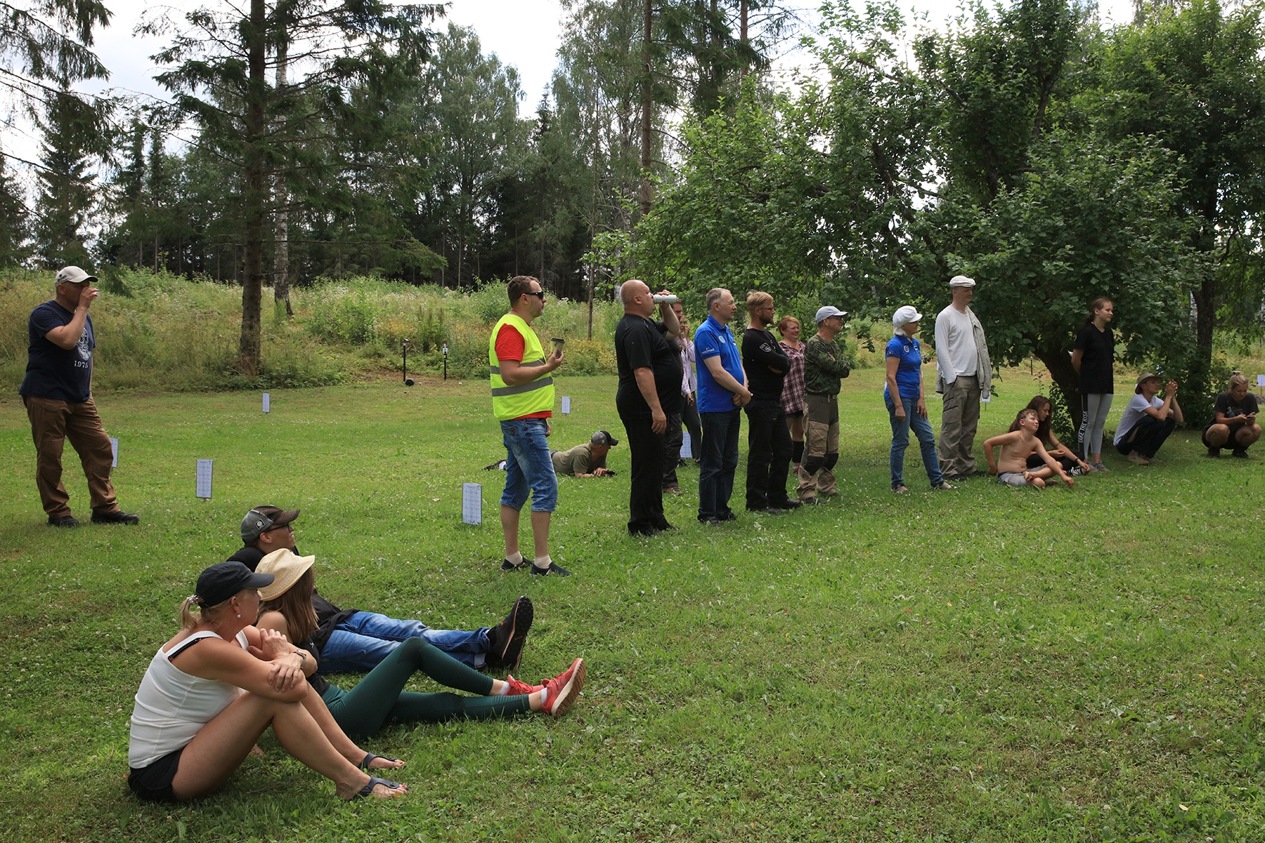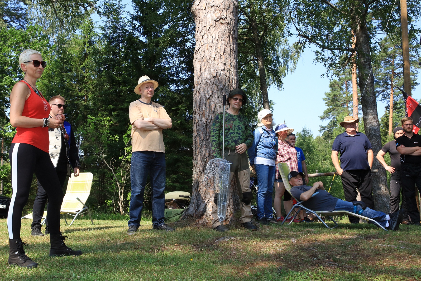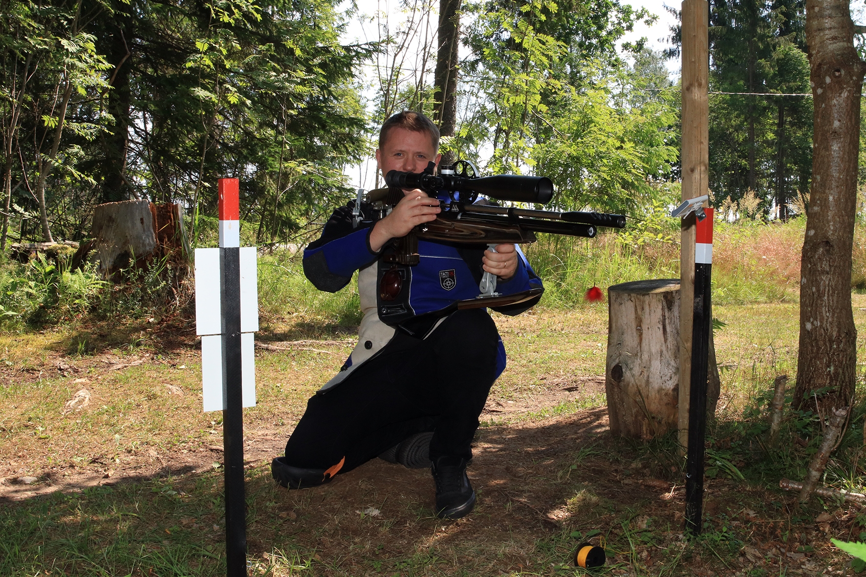 Võistlus algas. Laskurid lasid sihtmärke ning võitlesid palavuse ja putukatega. Päike paistis, temperatuur tõusis, optikad tegid trikke, kuid võistlus sujus. Keset sellist idülli kõlas kohtuniku vile – „Tuli seis!”. Selgus, et üks kukk oli kinni kiilunud 🙂 Kohtunik Toomas eemaldas oksa ning võistlus jätkus. Saabus esimese võistluspäeva lõpp. Laskureid ootas ees seljanka ning üllatusmagustoit metsmaasikatega.
