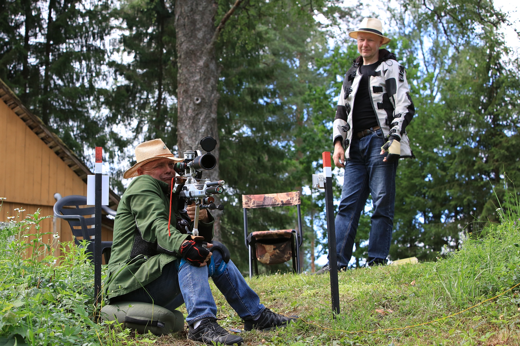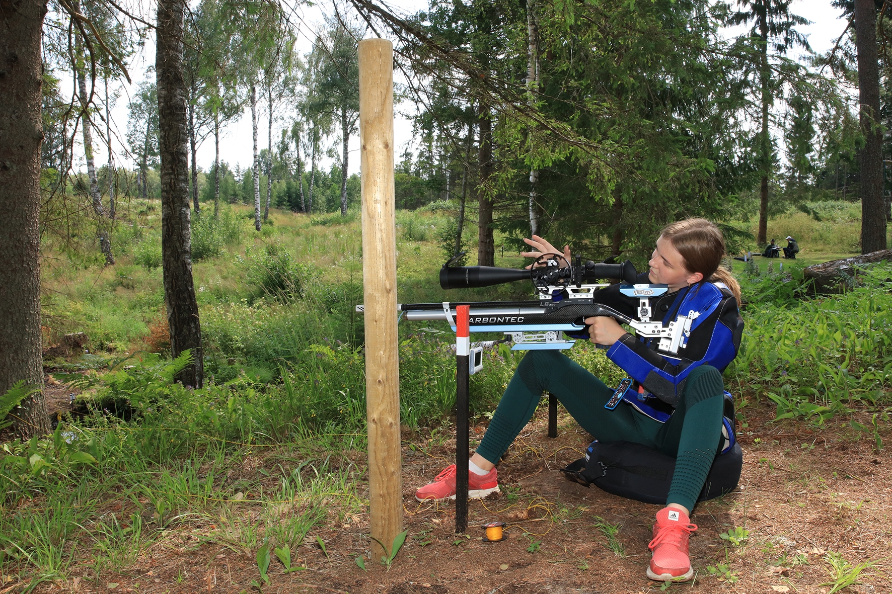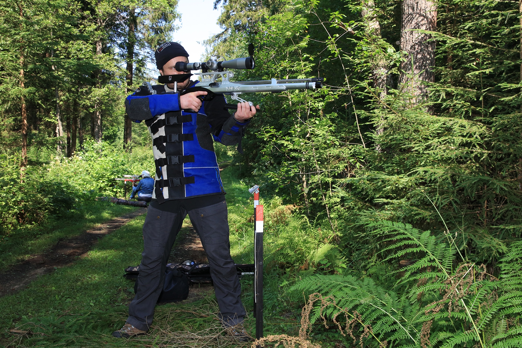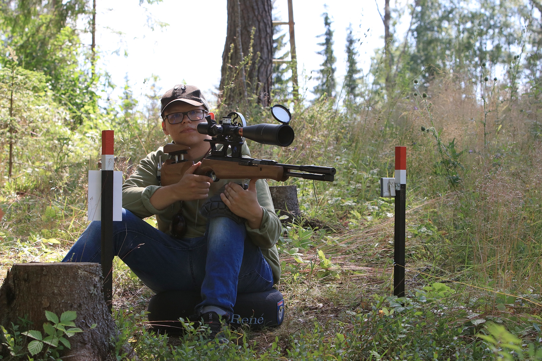 Võistlus algas. Laskurid lasid sihtmärke ning võitlesid palavuse ja putukatega. Päike paistis, temperatuur tõusis, optikad tegid trikke, kuid võistlus sujus. Keset sellist idülli kõlas kohtuniku vile – „Tuli seis!”. Selgus, et üks kukk oli kinni kiilunud 🙂 Kohtunik Toomas eemaldas oksa ning võistlus jätkus. Saabus esimese võistluspäeva lõpp. Laskureid ootas ees seljanka ning üllatusmagustoit metsmaasikatega.
