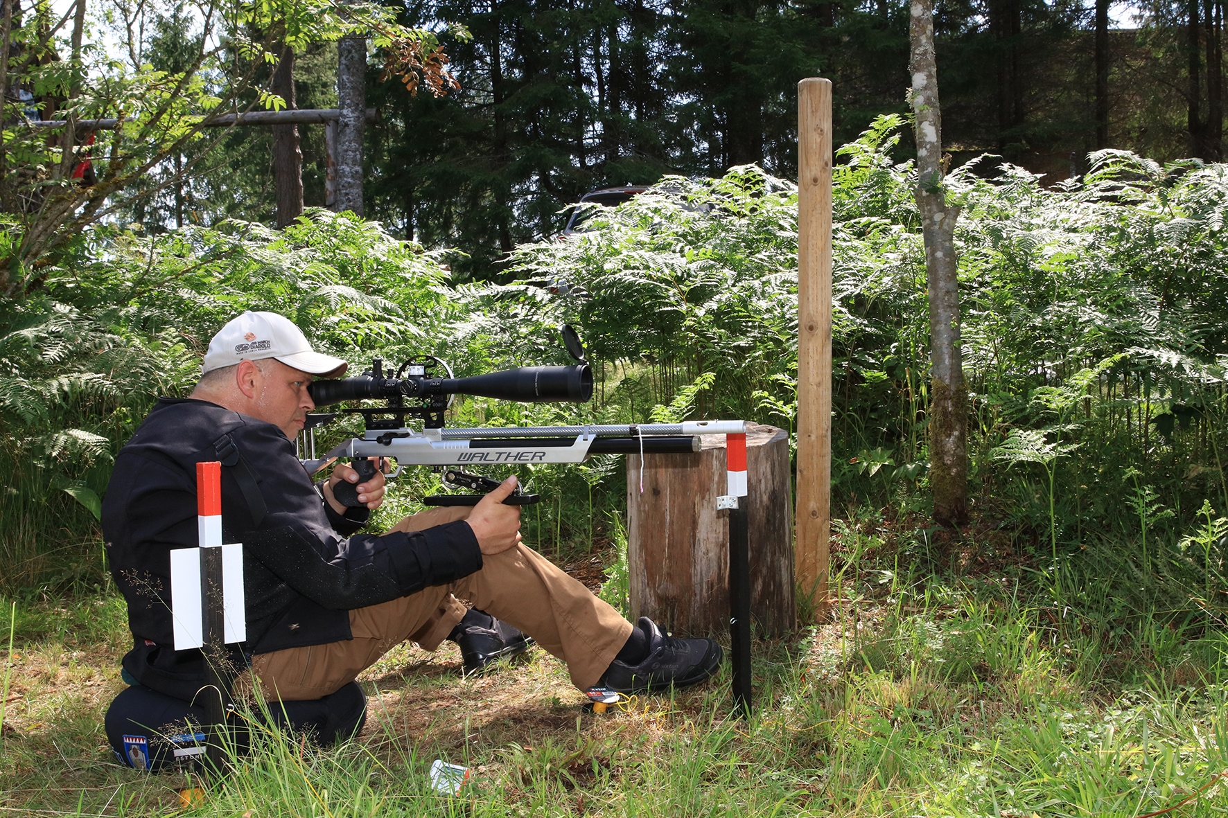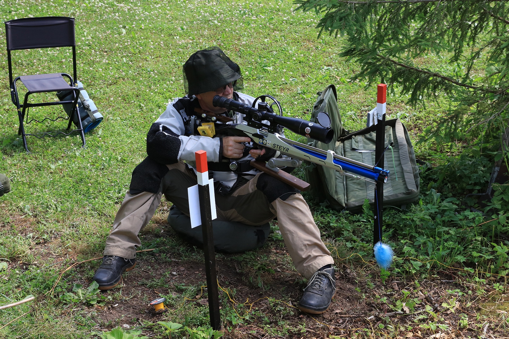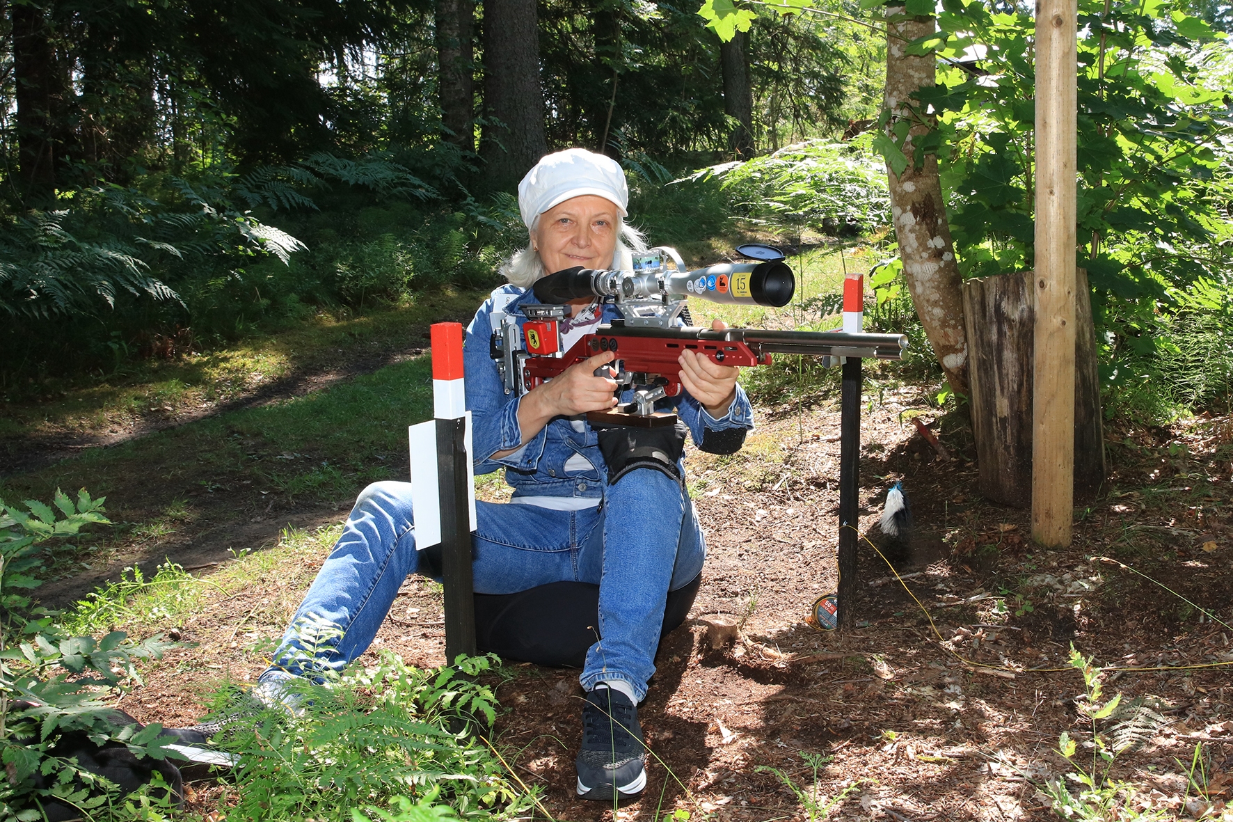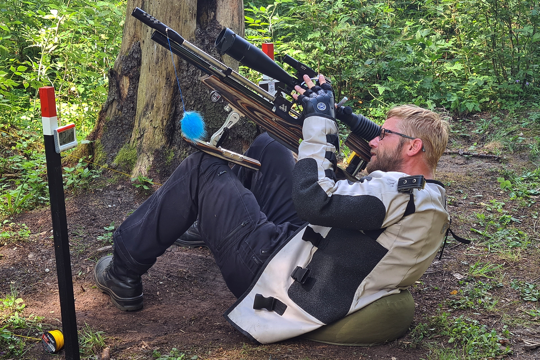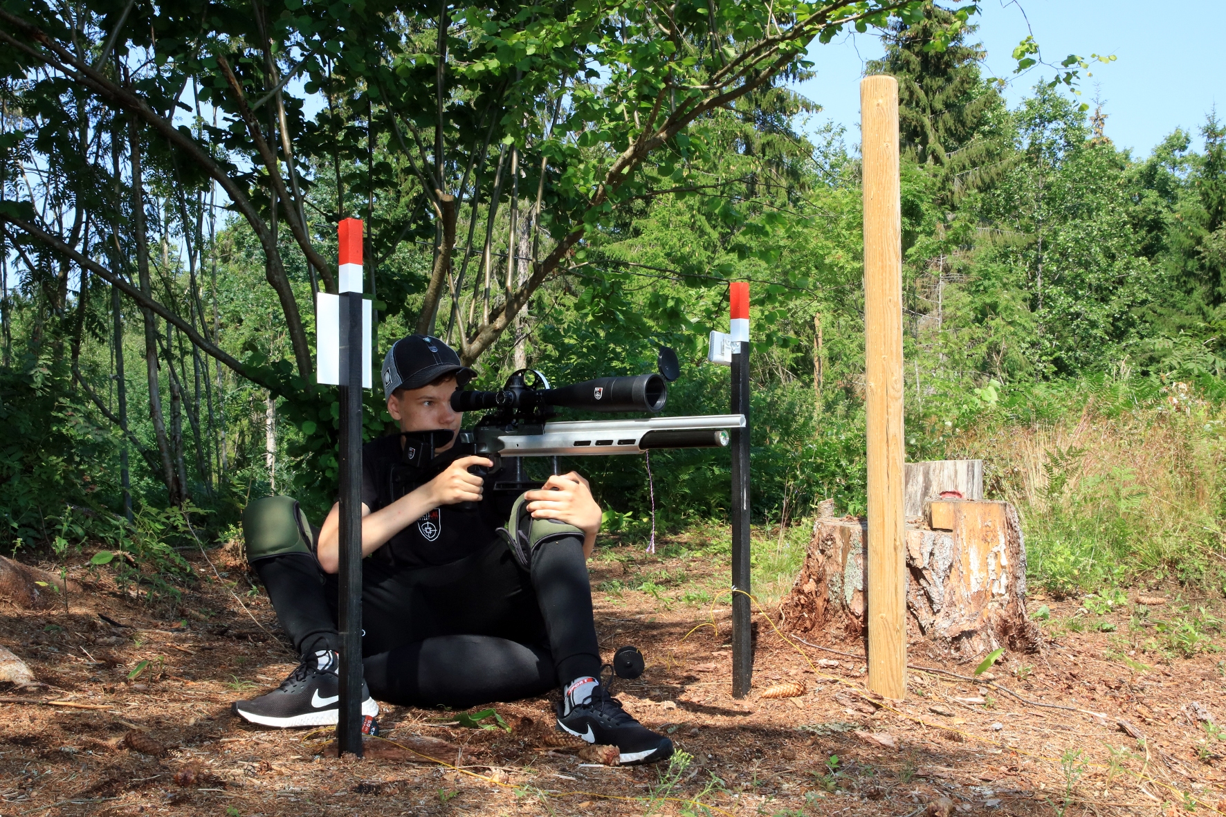 Võistlus algas. Laskurid lasid sihtmärke ning võitlesid palavuse ja putukatega. Päike paistis, temperatuur tõusis, optikad tegid trikke, kuid võistlus sujus. Keset sellist idülli kõlas kohtuniku vile – „Tuli seis!”. Selgus, et üks kukk oli kinni kiilunud 🙂 Kohtunik Toomas eemaldas oksa ning võistlus jätkus. Saabus esimese võistluspäeva lõpp. Laskureid ootas ees seljanka ning üllatusmagustoit metsmaasikatega.