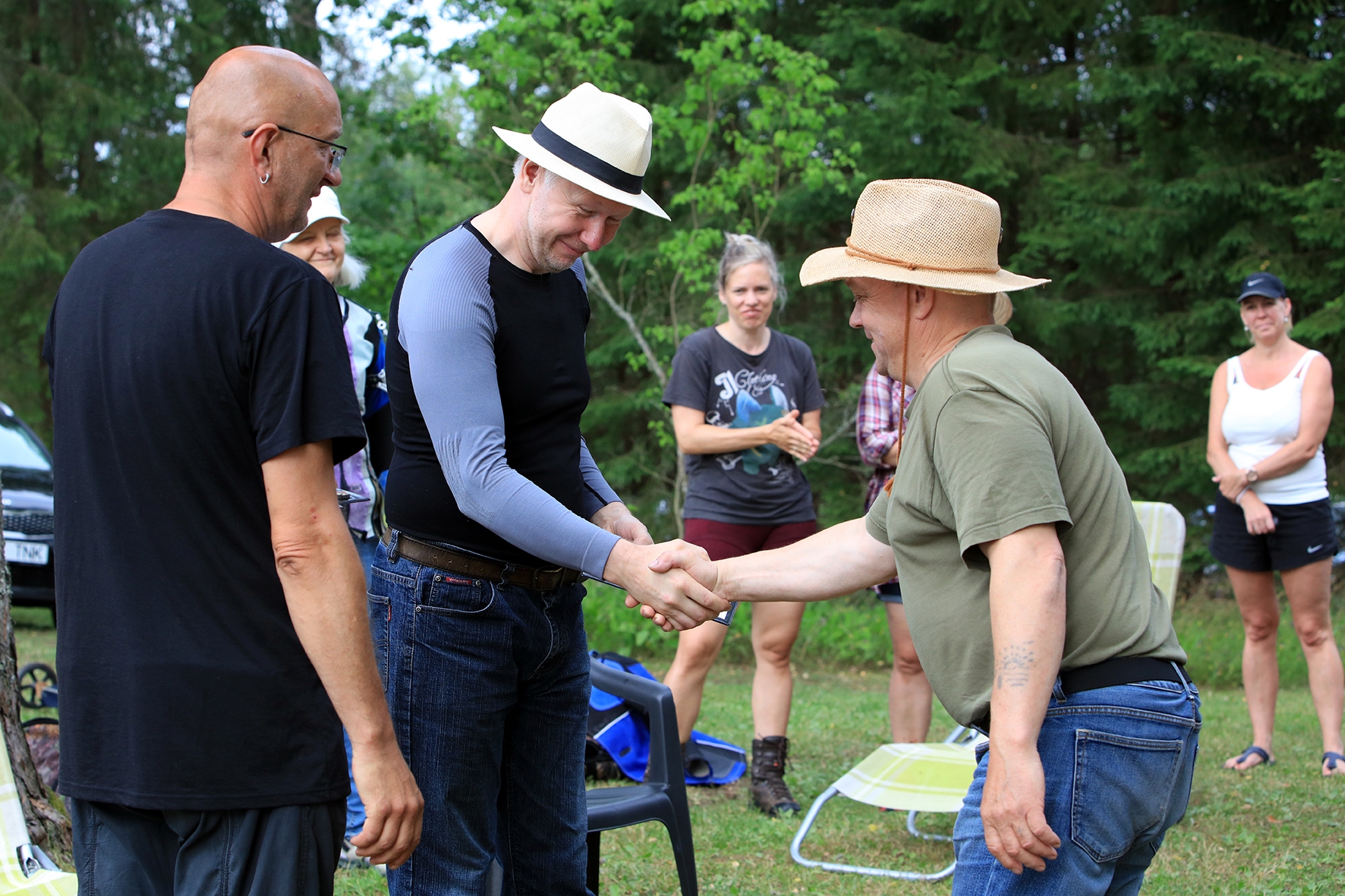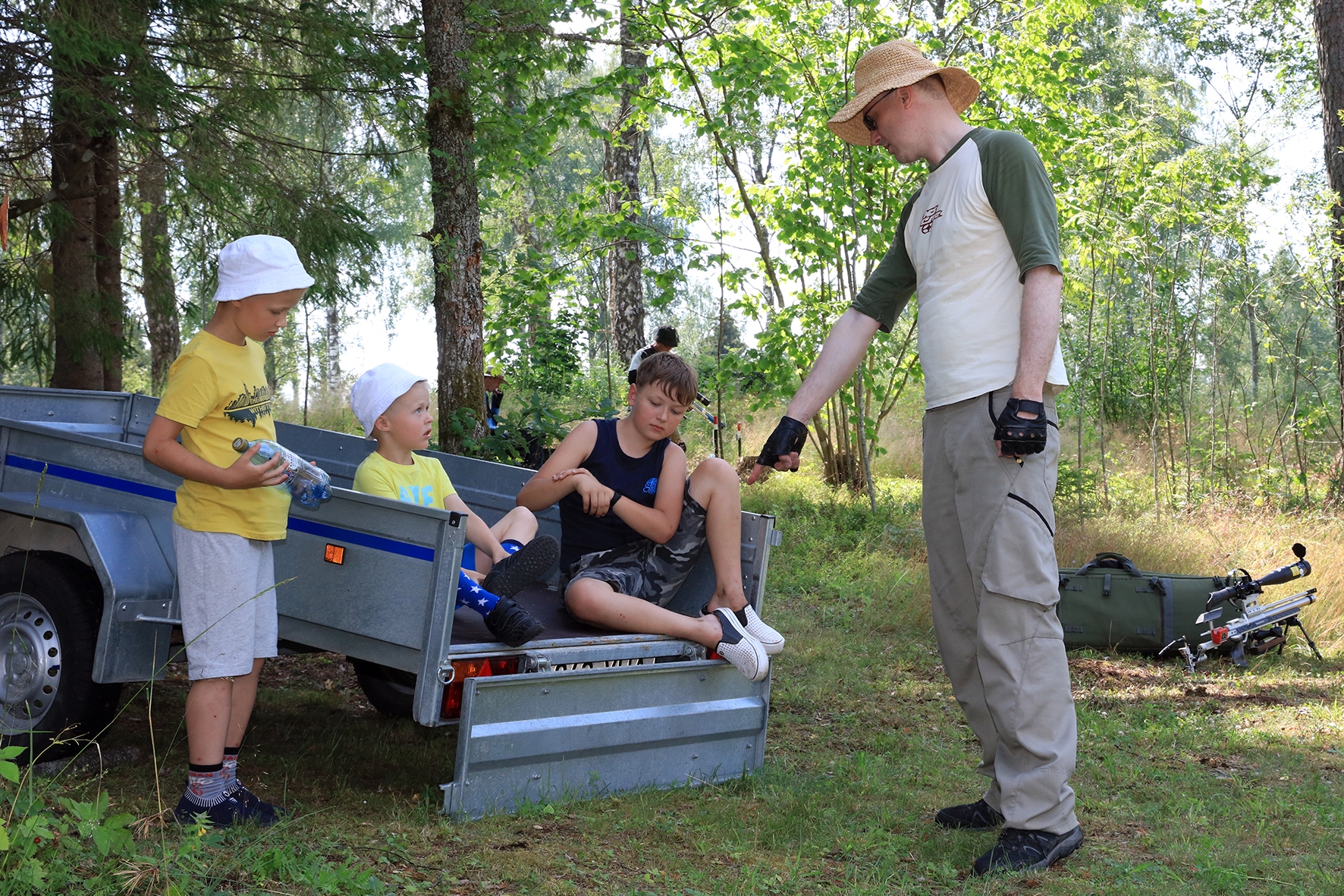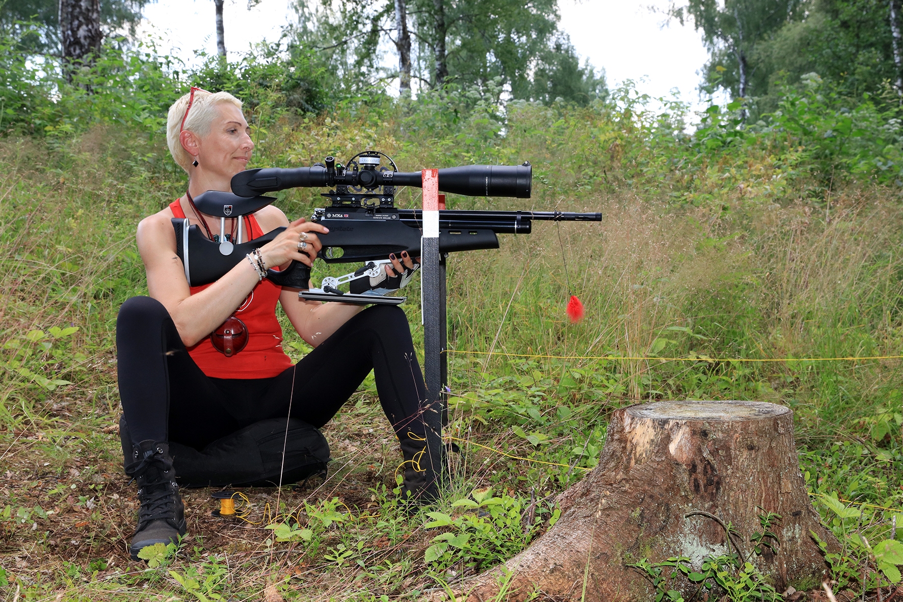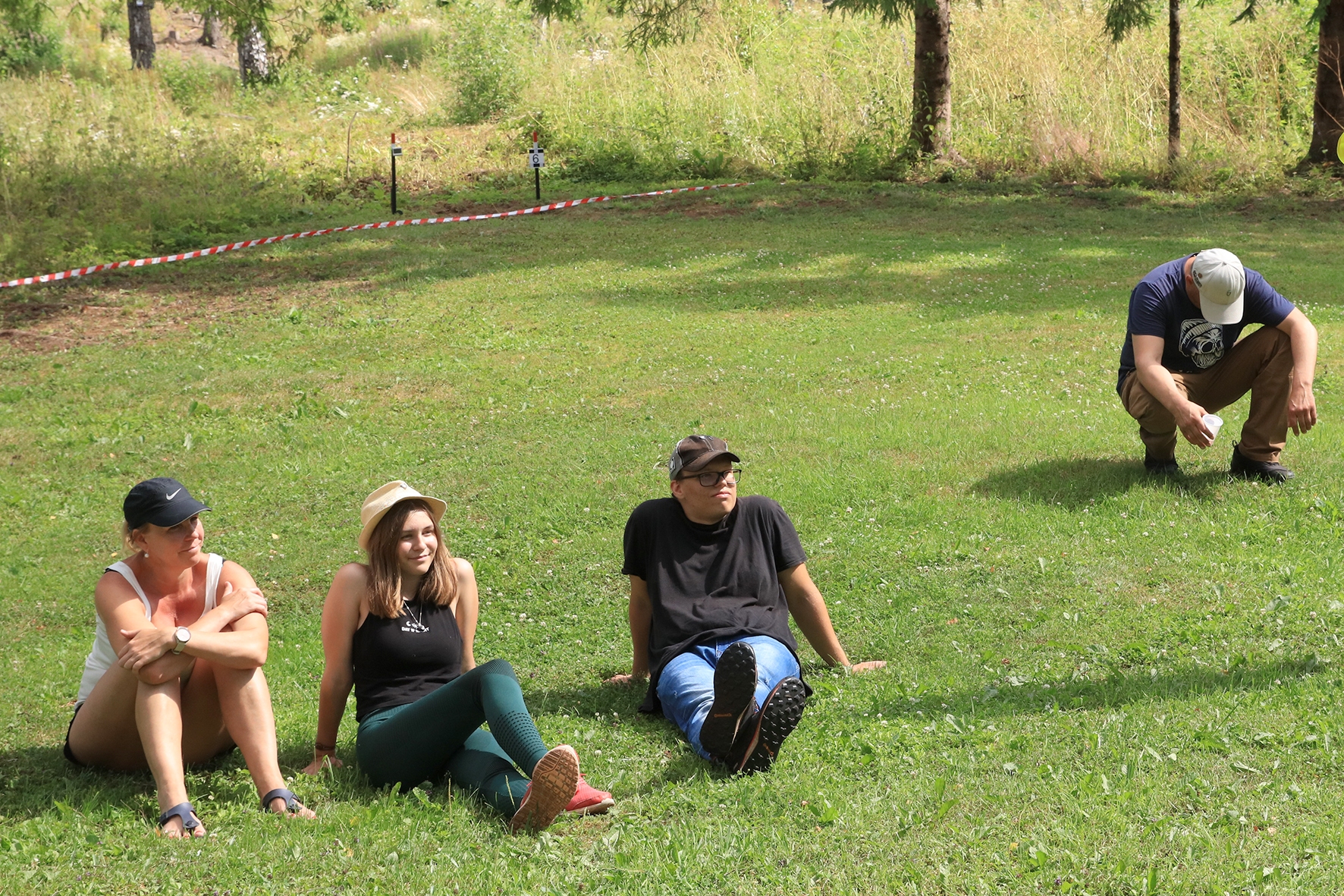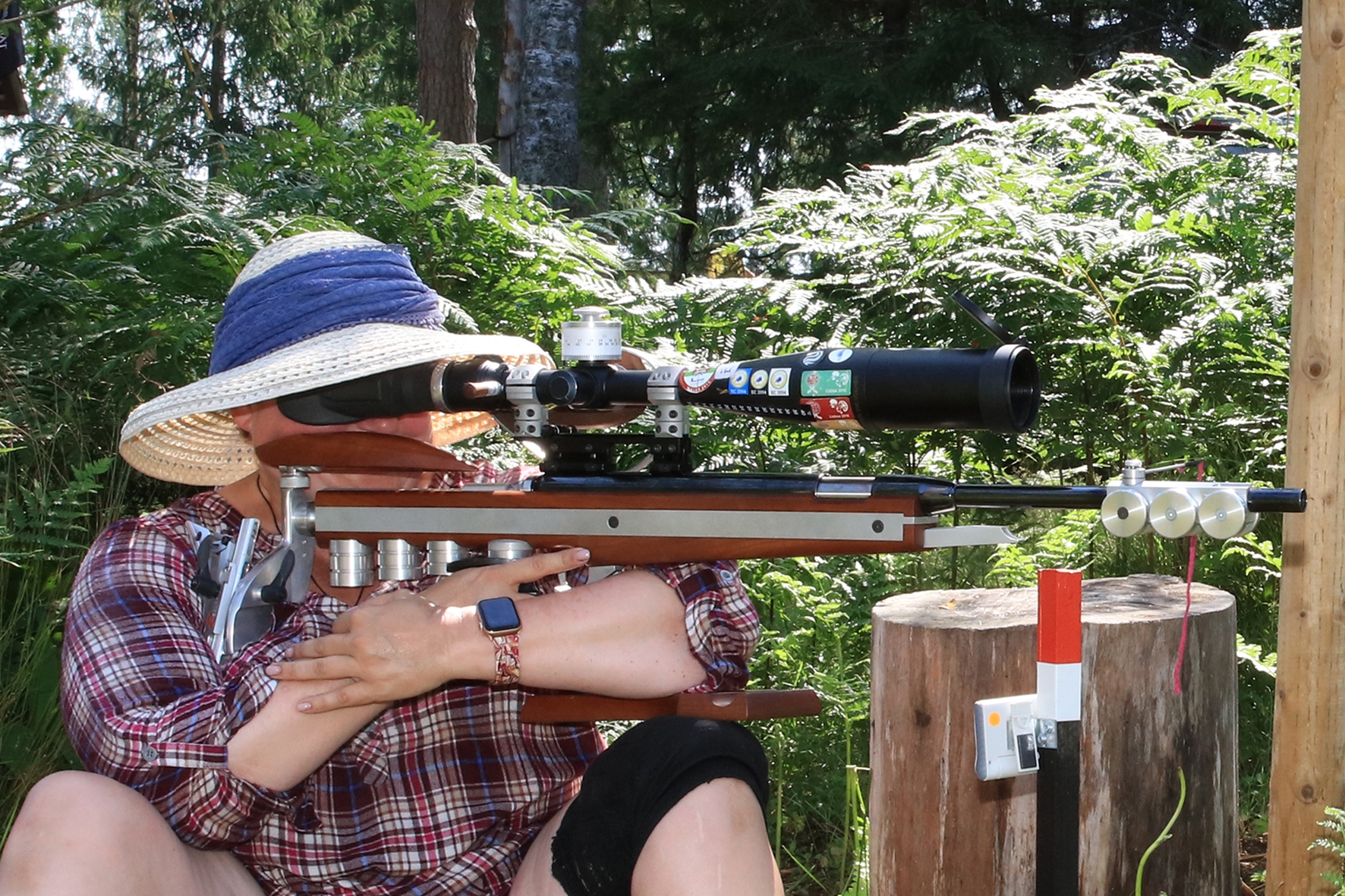 Võistlus algas. Laskurid lasid sihtmärke ning võitlesid palavuse ja putukatega. Päike paistis, temperatuur tõusis, optikad tegid trikke, kuid võistlus sujus. Keset sellist idülli kõlas kohtuniku vile – „Tuli seis!”. Selgus, et üks kukk oli kinni kiilunud 🙂 Kohtunik Toomas eemaldas oksa ning võistlus jätkus. Saabus esimese võistluspäeva lõpp. Laskureid ootas ees seljanka ning üllatusmagustoit metsmaasikatega.