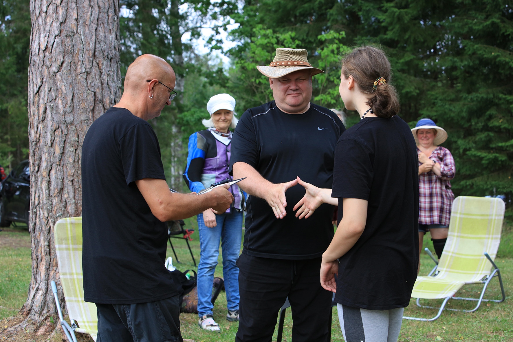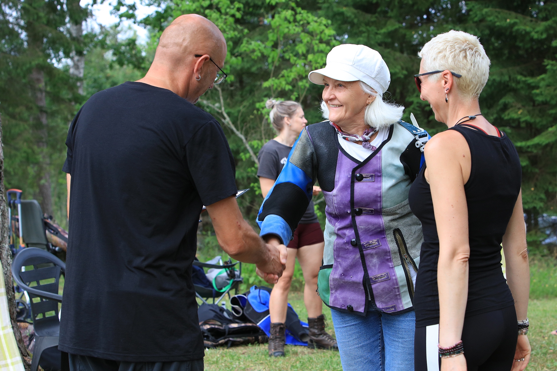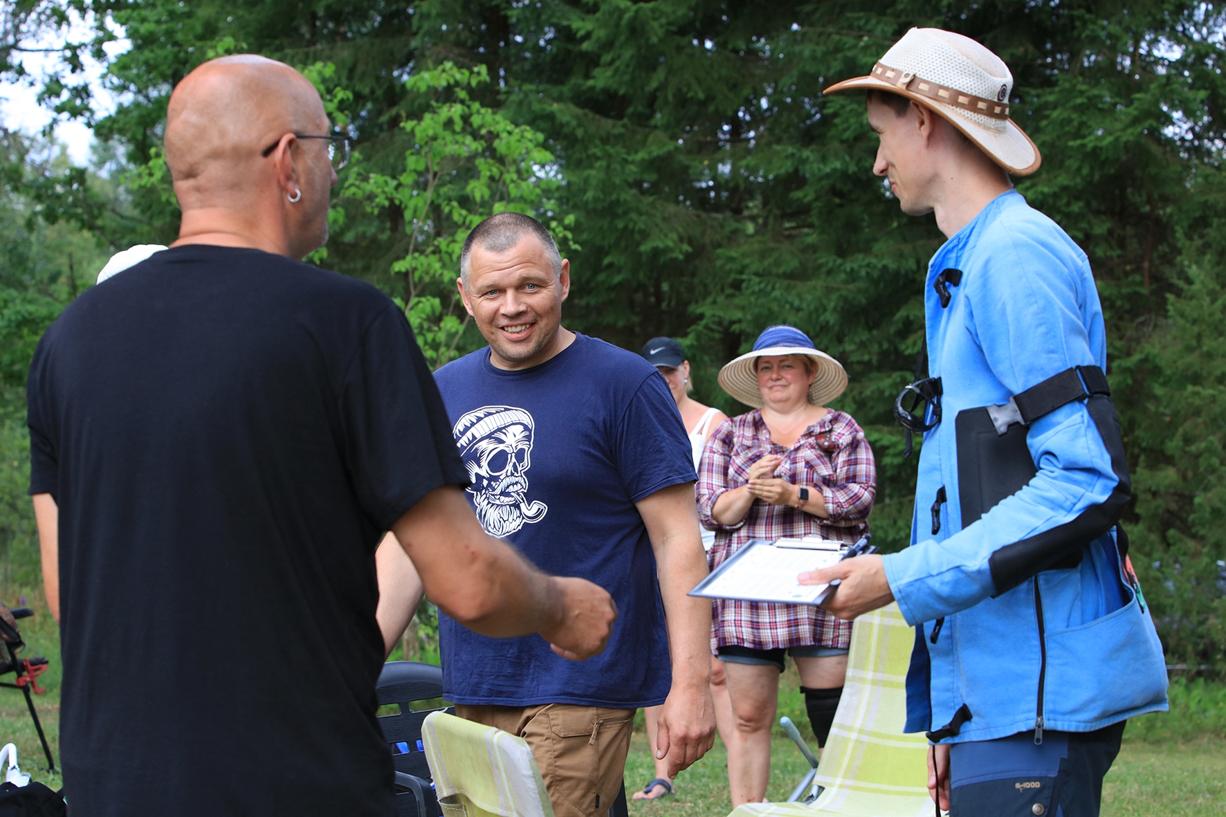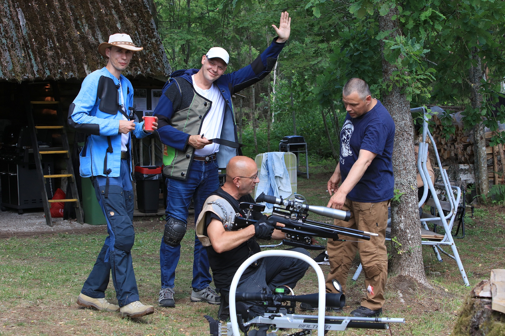 Esimese võistluspäeva hommikul oli soe, noh mitte lihtsalt soe, aga suisa palav. Võistlejad saabusid, laud oli kaetud ning külmad ja kuumad joogid valmis. Terve pika kuu üksteisega mittekohtunud laskurid said jälle suhelda 🙂 Peapiltnik Silja jäädvustas kõik rõõmsad taaskohtumised täpselt üles.