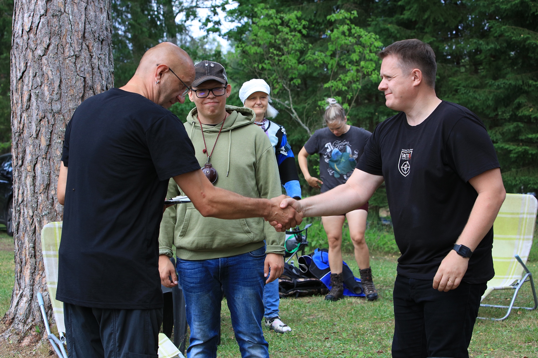 Teine võistluspäev oli pisut külm. No kui võrrelda 34°C ja 25°C siis oli ju külm 🙂 Lasta oli meeldivam, sest puhus ka kerge tuul, mis metsas oli salakaval ja lagedal keeruline. Teisel võistluspäeval oli meil kohtunik Ott Eesti mereväest. Vile kasutamine oli tal selge ja kui see metsas kõlas, lõpetasid linnud laulmise ja parmud kukkusid surnult maha 🙂 No vähemalt mingil põhjusel oli pühapäeval neid tüütuid putukaid vähem.
